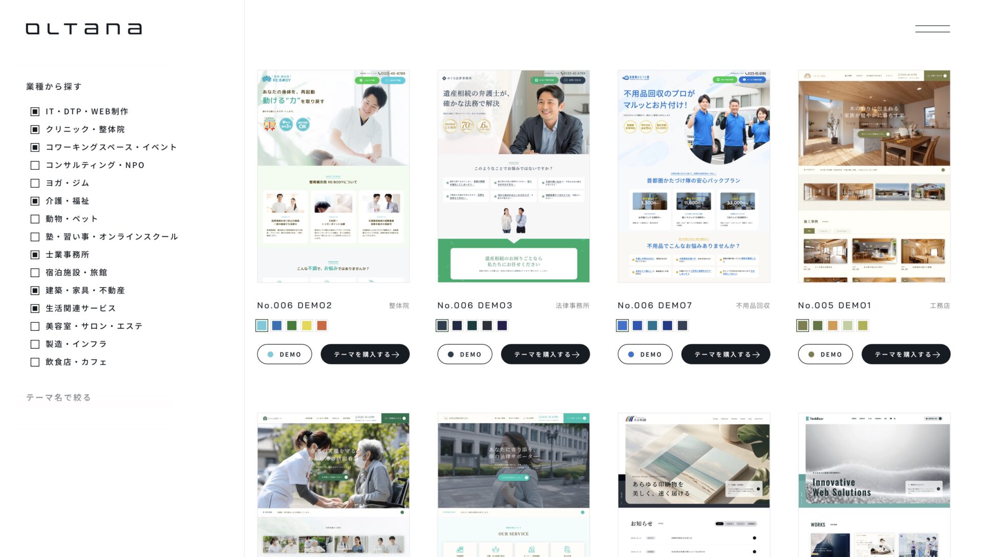 JIN:Rでもホームページ制作はできなくないですが、OLTANAはホームページ制作を専門とするテーマでおすすめです。