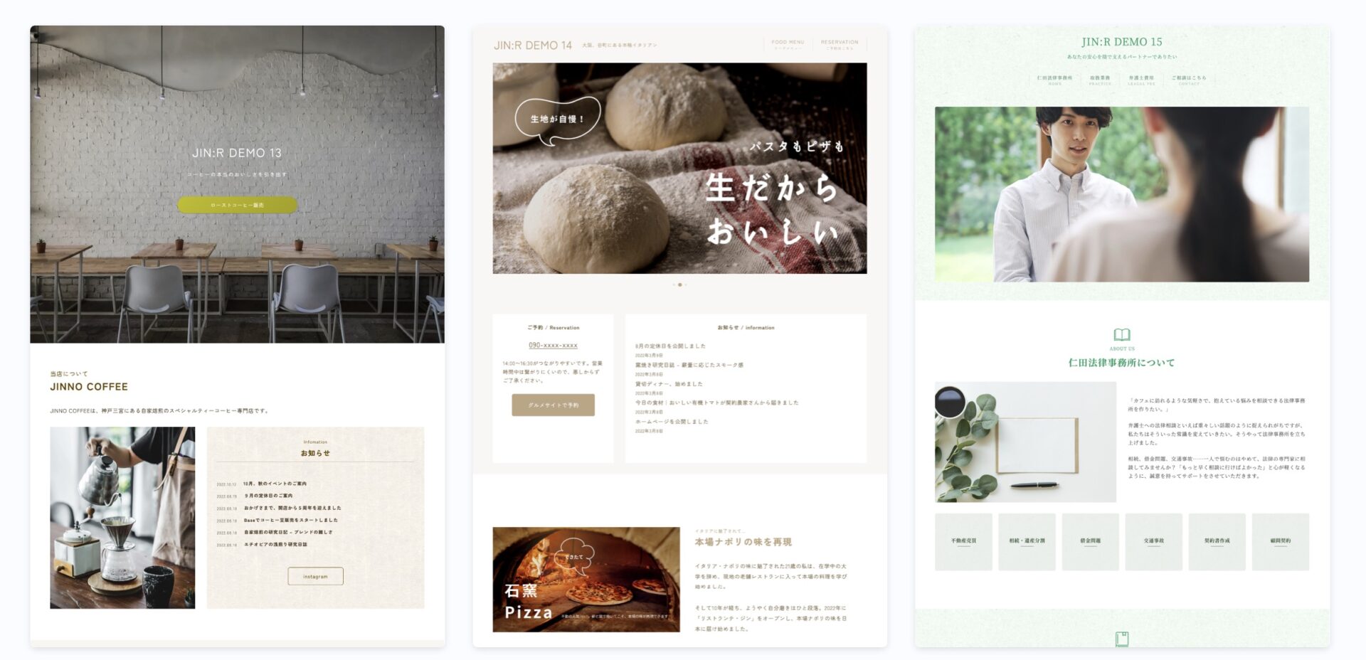実際に、JIN:Rのユーザーさんで以下のようなホームページを構築いただいています。